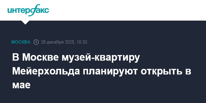Москва. 26 декабря. INTERFAX.RU - В Москве в 2026 году планируется открытие двух филиалов Бахрушинского театрального музея: в мае первых гостей примет музей-квартира Всеволода Мейерхольда, дом-музей Александра Островского планируют открыть осенью, сообщила "Интерфаксу" генеральный директор музея Кристина Трубинова.