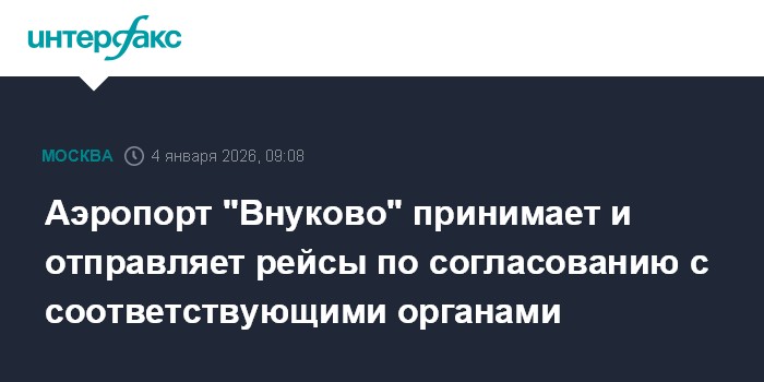 Аэропорт "Внуково" принимает и отправляет рейсы по согласованию с соответствующими органами