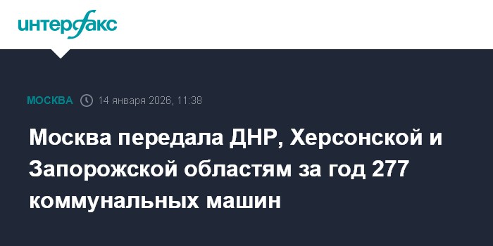 "Москва передала новым регионам России коммунальную технику. В 2025 году ДНР получила 207 машин, Херсонская область - 50, Запорожская - 20", - уточнил он.