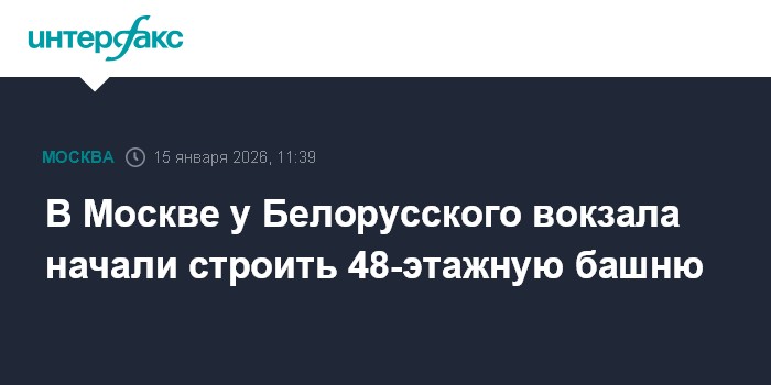 Москва. 15 января. INTERFAX.RU - В Москве рядом с метро "Белорусская" и Белорусским вокзалом началось строительство 48-этажного премиального офисного комплекса, сообщил Мосгосстройнадзор.