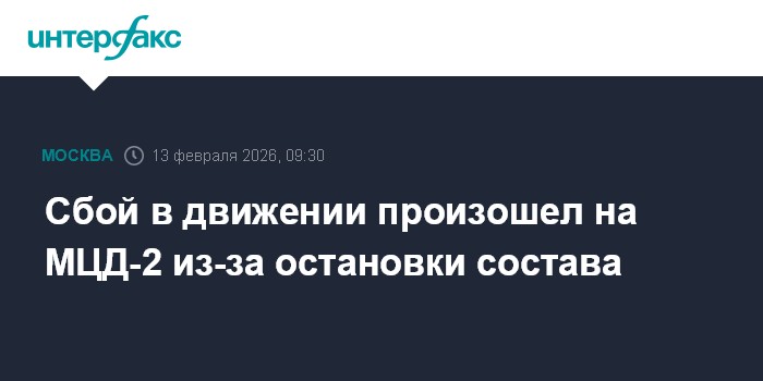 Москва. 13 февраля. INTERFAX.RU - Движение затруднено на второй линии Московских центральных диаметров (МЦД-2,D2) и Рижском направлении на станции "Павшино" из-за остановки состава по техническим причинам, сообщили в столичном департаменте транспорта.