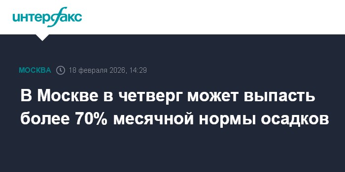 Москва. 18 февраля. INTERFAX.RU - В Москве 19 февраля может выпасть более 70% месячной нормы осадков, предупредил комплекс городского хозяйства.