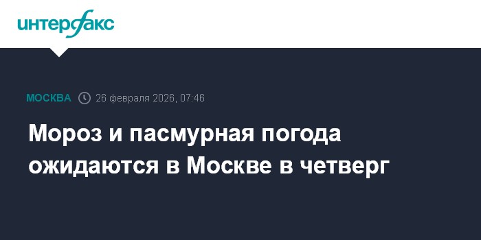 Москва. 26 февраля. INTERFAX.RU - Столичный департамент транспорта предупредил москвичей об ожидающейся в четверг морозной и пасмурной погоде.