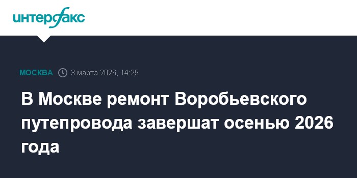 Москва. 3 марта. INTERFAX.RU - Реконструкцию Воробьевского путепровода на западе Москвы планируют закончить осенью 2026 года, сообщил мэр столицы Сергей Собянин.