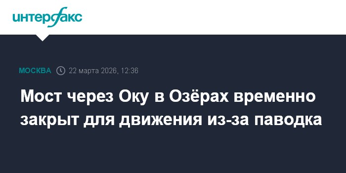 Москва. 22 марта. INTERFAX.RU - Мост в Озёрах закрыли в связи с подъемом уровня воды в реке Оке, сообщили "Интерфаксу" в пресс-службе министерства транспорта и дорожной инфраструктуры Московской области в воскресенье.