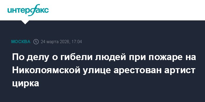Москва. 24 марта. INTERFAX.RU - Таганский суд арестовал на два месяца циркового артиста Евгения Чернова, обвиняемого по делу о пожаре на Николоямской улице в Москве, в результате которого погибли четыре человека. Ему вменяют причинение смерти по неосторожности (ч. 3 ст. 109 УК), сообщила пресс-служба городских судов общей юрисдикции.