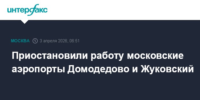 Москва. 3 апреля. INTERFAX.RU - Столичные аэропорты Домодедово и Жуковский (Раменское) временно не обслуживают рейсы, сообщает Росавиация.