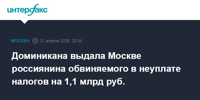 Доминикана выдала Москве россиянина обвиняемого в неуплате налогов на 1,1 млрд руб.