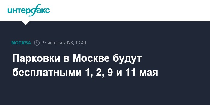 Москва. 27 апреля. INTERFAX.RU - Парковки в Москве 1, 2, 9 и 11 мая будут бесплатными, 3 и 10 мая бесплатно можно будет оставить машину на всех парковках, кроме зон динамического тарифа и улиц с оплатой 380, 450 и 600 рублей в час, сообщил мэр Москвы Сергей Собянин.