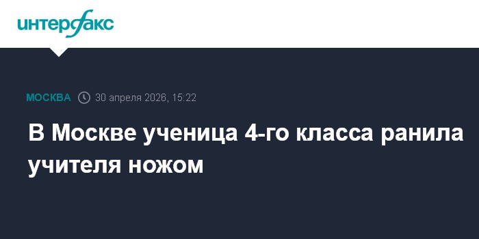 Москва. 30 апреля. INTERFAX.RU - Ученица 4-го класса столичной школы ранила кухонным ножом учителя, педагогу была оказана помощь. Его жизни и здоровью ничего не угрожает; ситуация находится под контролем правоохранительных органов.