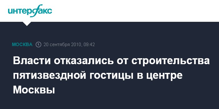 Власти отказались от строительства пятизвездной гостицы в центре Москвы