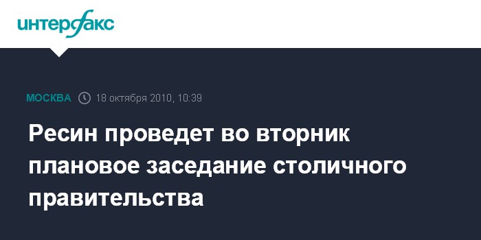 Москва. 18 октября. INTERFAX.RU - Врио мэра столицы Владимир Ресин будет председательствовать на очередном заседании столичного правительства, которое пройдет в Мраморном зале в мэрии на Тверской улице во вторник.