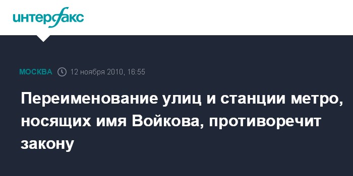 Переименование улиц и станции метро, носящих имя Войкова, противоречит закону