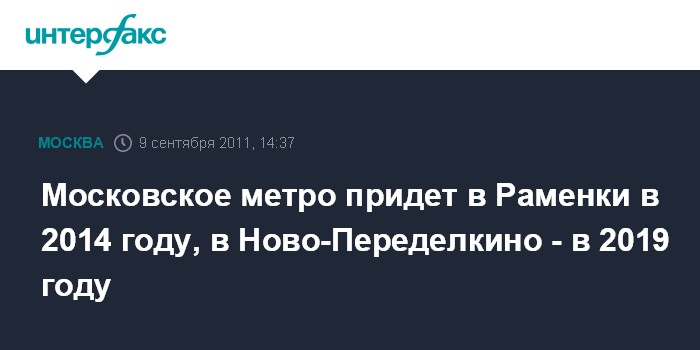 Московское метро придет в Раменки в 2014 году, в Ново-Переделкино - в 2019 году