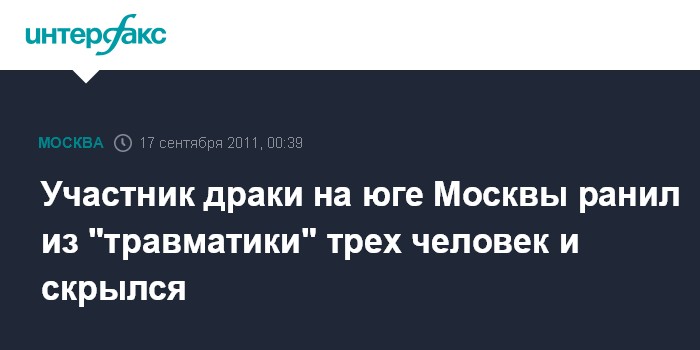 Москва. 17 сентября. ИНТЕРФАКС - Три человека пострадали в результате драки на юге Москвы, закончившейся стрельбой из травматического оружия, сообщили "Интерфаксу" в пресс-службу ГУ МВД России по Москве.