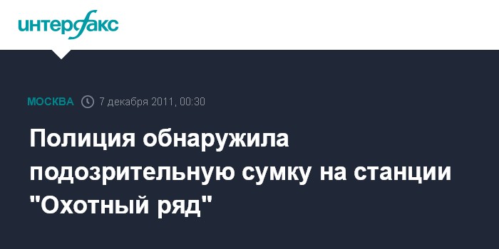 "Незадолго до полуночи дежурный патруль полиции обнаружил бесхозную сумку на платформе станции метро "Охотный ряд", - сказал собеседник агентства.