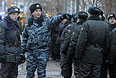 Первая часть акции по непонятным причинам началась раньше заявленных 11:30. Придя около 11:15 к месту ее начала у пересечения Фрунзенской набережной и 3-й Фрунзенской улицы, я обнаружил череду металлоискателей, проходить через которые полицейские уже не позволяли. Для некоторых участников митинга это оказалось полной неожиданностью - при мне женщина в длинной шубе, возглавлявшая группу из человек семи, одетых победнее, пыталась уговорить старшего лейтенанта полиции пропустить ее за ограждения. Страж правопорядка отказывался, говоря что ему еще хочется поработать в органах. "Но ведь мы же уйдем!", - теряя надежду, пытались доказать что-то граждане. "Так идите. Я вот уйти не могу", - отвечал на это полицейский. Казалось, он об этом жалел. Срезать до Лужников через дворы не удалось - их с использованием грузовиков предусмотрительно перекрыла полиция - и я, как и многие другие, был вынужден направиться к стадиону по Комсомольскому проспекту.