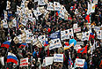 По мере приближения к арене все заметнее становилось, что многие участники митинга идут в противоположную сторону. Группы людей с пропутинской символикой двигались в центр - к метро "Фрунзенская". Как выяснилось позднее, явный отток зрителей с митинга, на который они, по идее, пришли добровольно, наблюдал не один я.