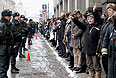 Участники акции, как и собирались, соблюдали установленные правила – стоящие практически нигде не выходили на проезжую часть. За порядком следили десятки сотрудников полиции и ОМОН, а также ДПС.