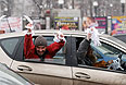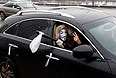 По внутренней стороне Садового кольца между двумя и тремя часами дня, поддерживая вышедших активистов, двигались десятки машин с белыми лентами, бантами, шарами, наклейками, флагами "Яблока", кто-то просто открывал окна, тормозил, высовывал белые пакеты, сигналил в знак поддержки участников "Б. Стихийный автопробег по плотности не уступал ранее организованным, но, надо признать, что из-за него движение по правому ряду Садового было затруднено.