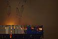 По другой версии, пожар мог вызвать прожектор на строительном кране. "Предполагается, что пожар произошел в результате теплового воздействия нагретой поверхности прожектора, установленного на кране, на сгораемый материал, используемый для накрытия бетона", - сообщили в пресс-службе ГУ МЧС России по Москве.