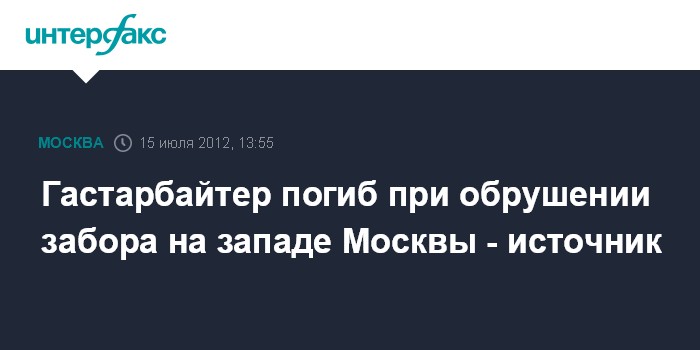 Москва. 15 июля. INTERFAX.RU - 21-летний приезжий из Таджикистана погиб в результате несчастного случая в Западном административном округе Москвы, сообщил "Интерфаксу" в воскресенье источник в правоохранительных органах.