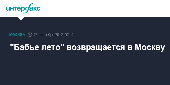 Москва. 26 сентября. ИНТЕРФАКС-МОСКВА - Со среды в столичный регион возвращается "бабье лето", к концу недели столбики термометров могут превысить 20-градусную отметку, сообщили "Интерфаксу" в Гидрометеобюро Москвы и Московской области.