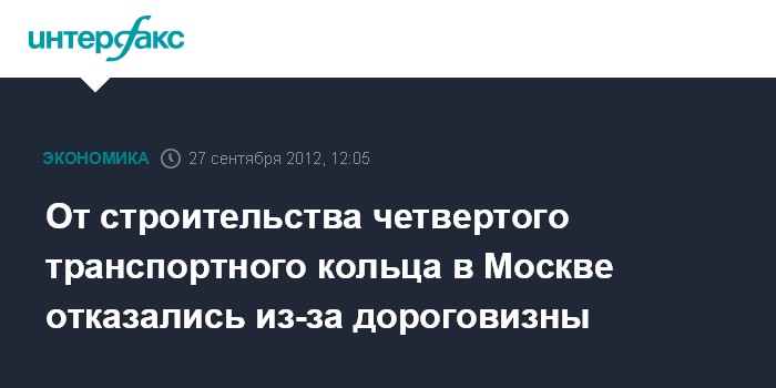 От строительства четвертого транспортного кольца в Москве отказались из-за дороговизны