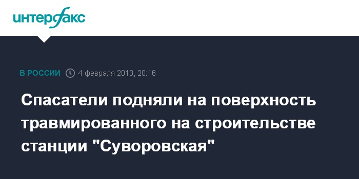 Спасатели подняли на поверхность травмированного на строительстве станции "Суворовская"