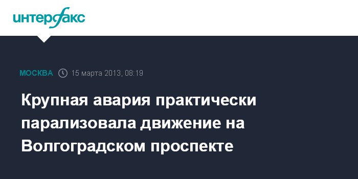 Москва. 15 марта. INTERFAXS.RU - Крупное ДТП произошло на Волгоградском проспекте в Москве, сообщили "Интерфаксу" в пресс-службе управления ГИБДД Москвы в пятницу.