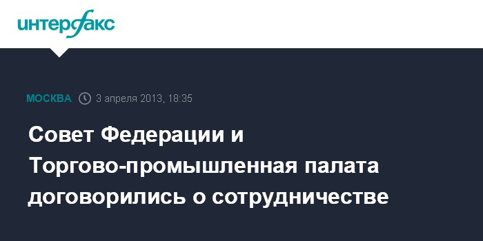 Москва. 3 апреля. INTERFAX.RU – Руководители Совета Федерации РФ и Торгово-промышленной палаты РФ в среду подписали соглашение о сотрудничестве.