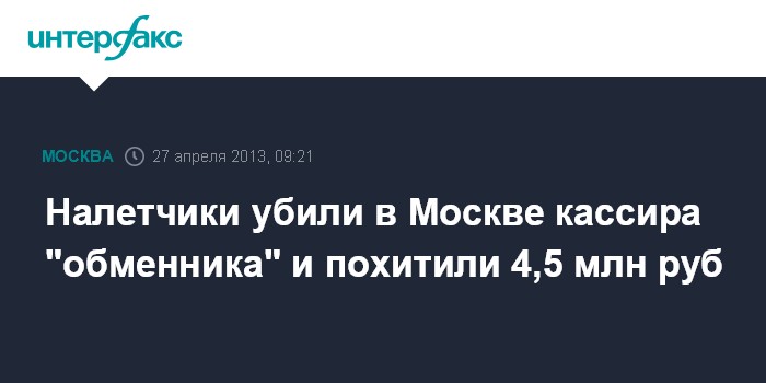 Налетчики убили в Москве кассира "обменника" и похитили 4,5 млн руб