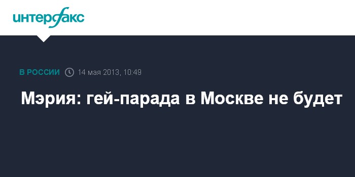 Москва. 14 мая. INTERFAX.RU - Мэрия Москвы не планирует согласовывать проведение 25 мая в столице шествия представителей сексуальных меньшинств.