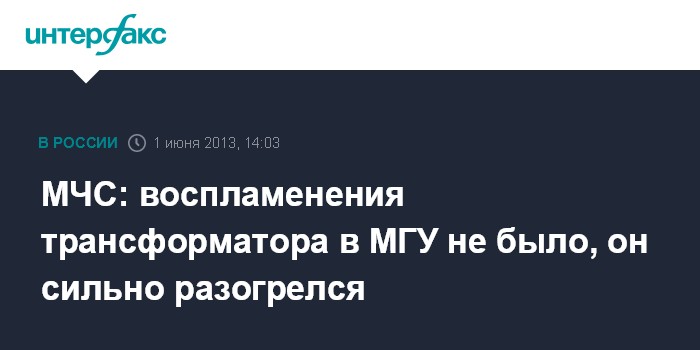 МЧС: воспламенения трансформатора в МГУ не было, он сильно разогрелся