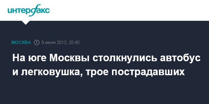 Москва. 9 июня. ИНТЕРФАКС - Три человека пострадали в результате ДТП на юге Москвы с участием рейсового автобуса, сообщил "Интерфаксу" источник в правоохранительных органах.
