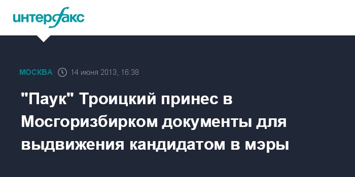 "Паук" Троицкий принес в Мосгоризбирком документы для выдвижения кандидатом в мэры