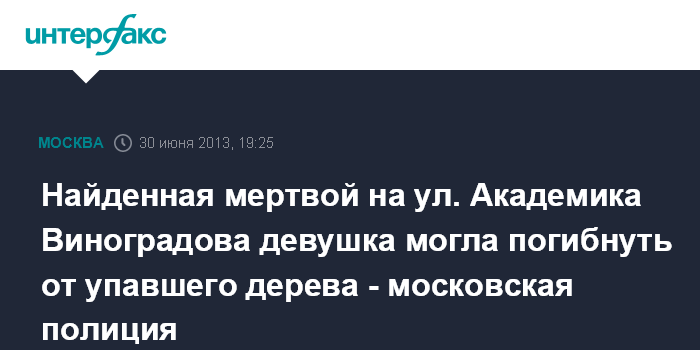 Найденная мертвой на ул. Академика Виноградова девушка могла погибнуть от упавшего дерева - московская полиция