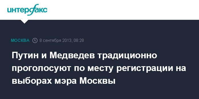 Путин и Медведев традиционно проголосуют по месту регистрации на выборах мэра Москвы