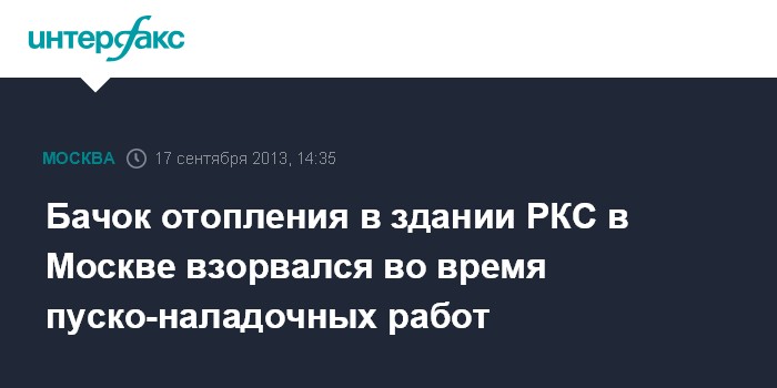Бачок отопления в здании РКС в Москве взорвался во время пуско-наладочных работ