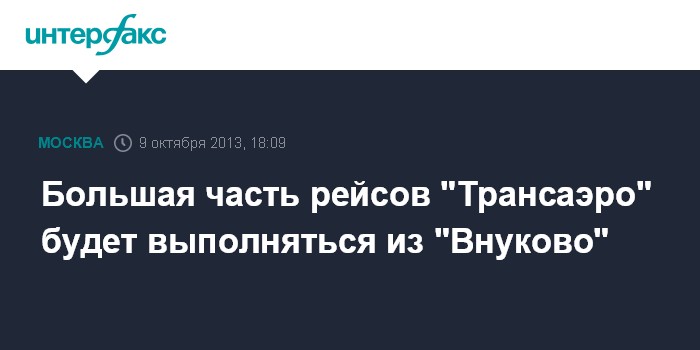 Большая часть рейсов "Трансаэро" будет выполняться из "Внуково"