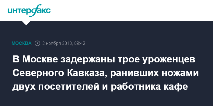 В Москве задержаны трое уроженцев Северного Кавказа, ранивших ножами двух посетителей и работника кафе