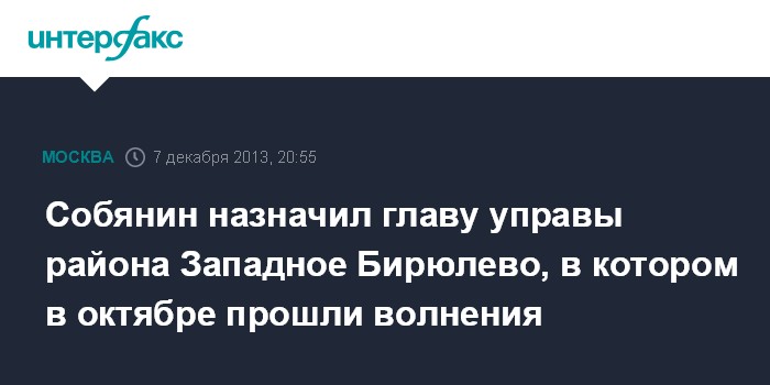 Собянин назначил главу управы района Западное Бирюлево, в котором в октябре прошли волнения