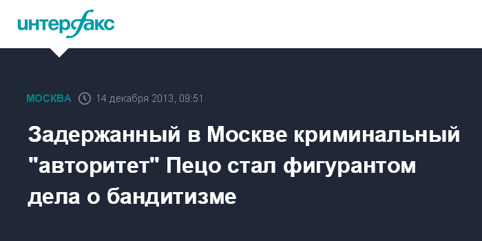 Задержанный в Москве криминальный "авторитет" Пецо стал фигурантом дела о бандитизме