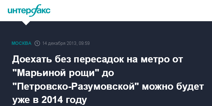 Доехать без пересадок на метро от "Марьиной рощи" до "Петровско-Разумовской" можно будет уже в 2014 году