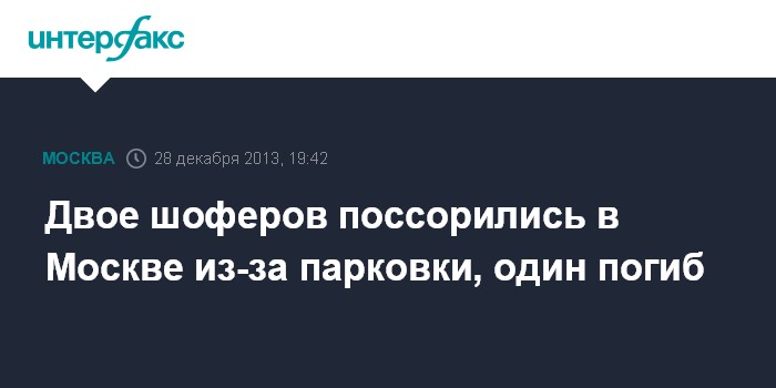 Москва. 28 декабря. INTERFAX.RU - Ссора двух водителей за место на парковке в Москве закончилась гибелью одного из них, сообщили "Интерфаксу" в пресс-службе ГУ МВД России по Москве.