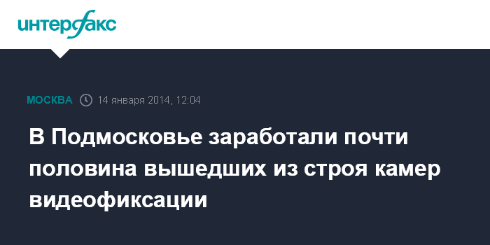 Москва. 14 января. INTERFAX.RU - Восстановлена работа 54 из 130 комплексов автоматической фотовидеофиксации нарушений правил дорожного движения, вышедших из строя в Московской области.