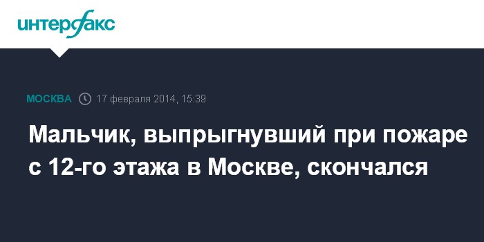 Мальчик, выпрыгнувший при пожаре с 12-го этажа в Москве, скончался