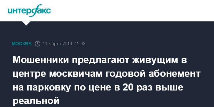 Москва. 11 марта. INTERFAX.RU - В Москве появились мошенники, предлагающие жителям центра города годовые абонементы на парковку по цене, которая превышает реальную в 20 раз.