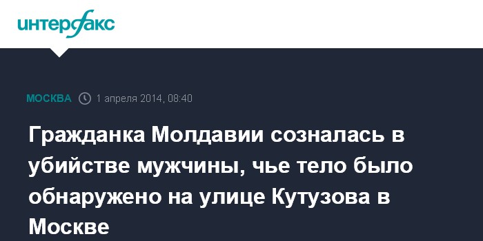 Гражданка Молдавии созналась в убийстве мужчины, чье тело было обнаружено на улице Кутузова в Москве