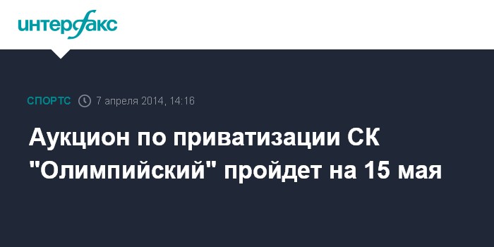 Аукцион по приватизации СК "Олимпийский" пройдет на 15 мая